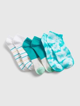 3 Paar in der Packung in Blau und Weiß mit unterschiedlichen Mustern auf jedem Paar.