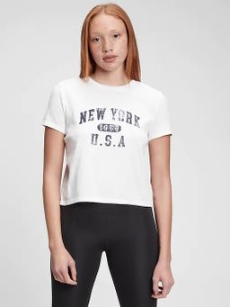 - Weißes Damen T-Shirt mit Aufschrift.