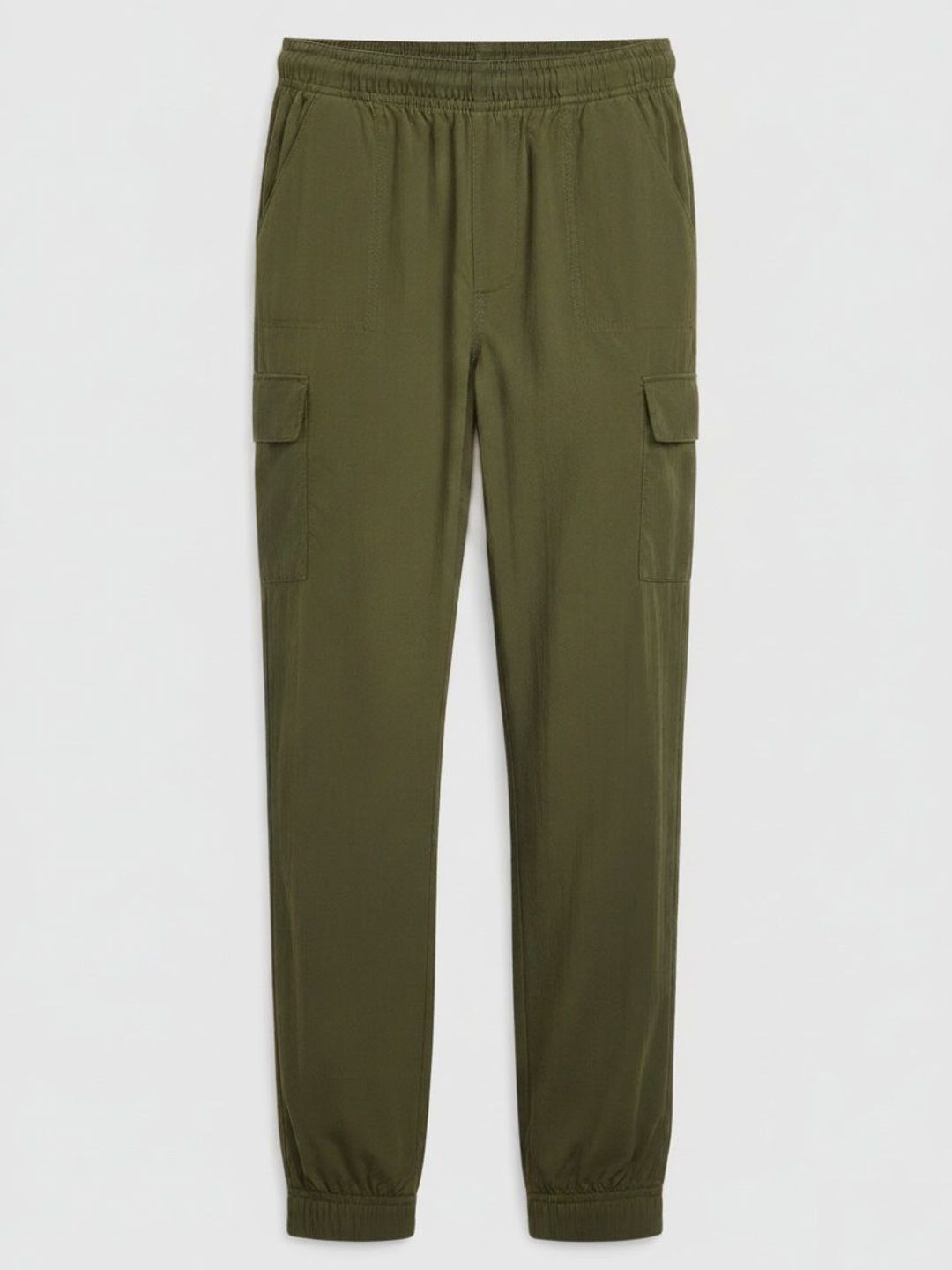 Sportliche einfarbige Hose. Kollektion für Teenager. Elastischer Bund mit Kordelzug. Schräge Vordertaschen und praktische Seitentaschen. Hose mit elastischem Saum. 35 % recyceltes Nylon.